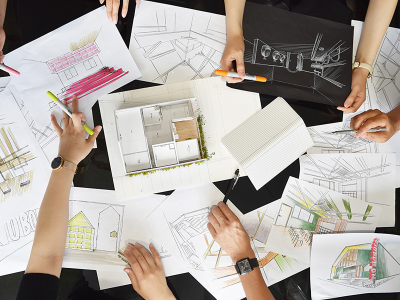 わたしたちのデザインの全ては、一枚のスケッチから始まります。デザイナーたちは、お客様のために熱い議論を交わし情熱を注ぎます。その情熱こそが、より優れたデザインへと昇華させます。お客様の“思い”の為に情熱を惜しまないこと。これこそが、優れたデザインを生み出すわたしたちの原点です。